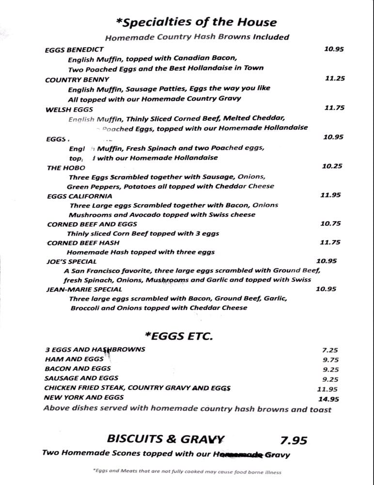 - Chicken Fried Steak, Country Gravy, and Eggs: A favorite among locals, it's comfort food at its finest.